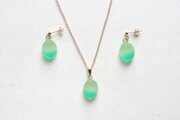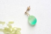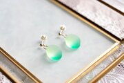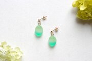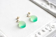 すりガラスのような柔らかな風合いと、そこからほのかに覗く爽やかな二色のグリーンが美しいピアス。