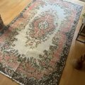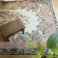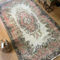 111×203くすみサーモンピンク フローラルメダリオン トルコヴィンテージラグ