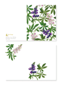 アクリル絵の具で描いたルピナスのパターンのグリーティングカードです。中にも同じルピナスのイラストが入っています。