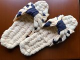 綿布を編み込み、しっかりした履き心地で、毎日の生活が幸せに感じられるお洒落な室内履きです。サイズは実寸約25㎝。最初は小さく感じる方も、徐々に足の形に合ってきます。