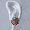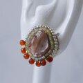 金具が選べる おしゃべりなイヤリング ピアス 50 まる オレンジ おおぶり サージカルステンレス 一点もの ビーズ刺繍とても素敵です。