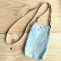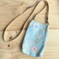 リバティ スマホポーチ 持ち手/ショルダー 帆布裏地 本革ベルト<Irma>(イルマ)ブルー