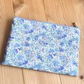 リバティ 20cmファスナー フラットポーチ ポケット付 <Claire Aude>(クレア・オード)ブルー