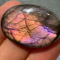 ピンク色の輝きが美しい、ラブラドライトの楕円形ルースです。