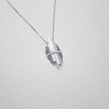 素材は925スターリングシルバー。ロジウム加工が施されており、変色を防ぎ、金属アレルギーにも配慮されています。中心には1.5mmのモアッサナイトが煌めき、エシカルかつラグジュアリーな印象を添えています。