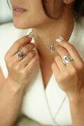 素材は925スターリングシルバー。ロジウム加工が施されており、変色を防ぎ、金属アレルギーにも配慮されています。中心には6×8mmのナチュラルオーバルアメジストが煌めき、自然の力強さと洗練された美しさを添えています。