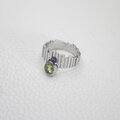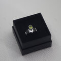 素材は925スターリングシルバーを使用し、変色を防ぐロジウム加工が施されています。中央には**ナチュラルなオーバルカットのペリドット(6×8mm)**をセッティング。みずみずしいグリーンの輝きが、自然のエネルギーと前向きな印象を与えてくれます。