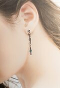 シルバーカラーのメタルパーツに、ほんのり光を宿したブルーグリーンのビーズを添えて、