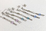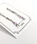 シルバーカラーのメタルパーツに、ほんのり光を宿したライトパープルのビーズを添えて、