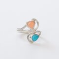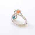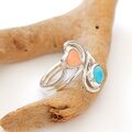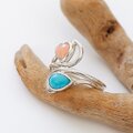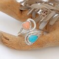 ~鮮やかブルーと可憐なピンクの組み合わせ~スリーピングビューティー・ターコイズと深海珊瑚のデザインリング 13号