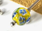黄色と水色の花のとんぼ玉でかんざしを作りました。