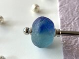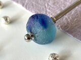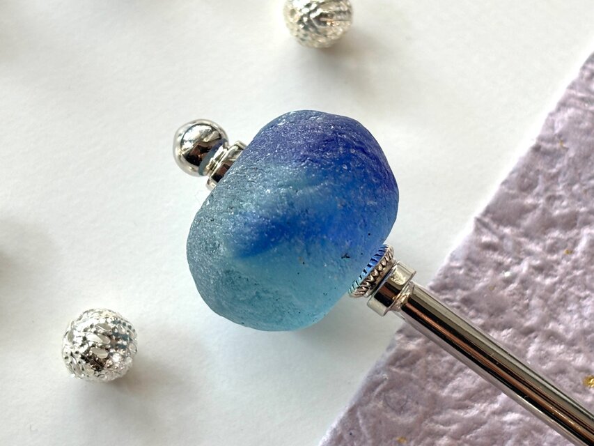 ブルーのアフリカンパウダーガラスビーズでかんざしを作りました。