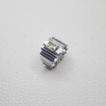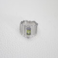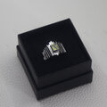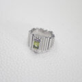 素材は925スターリングシルバーで、変色防止加工が施されています。中央には**ナチュラルな長方形ペリドット(5×7mm)**をセッティングしており、自然のグリーンが凛とした存在感を放ちます。