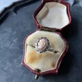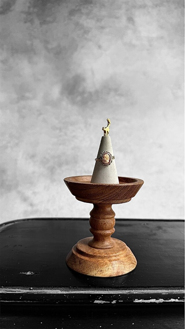 1978年、英国の小さな工房で、一人の熟練した職人が丁寧に手を動かし、このシェルカメオを彫り上げました。貝殻の色合いを活かし、髪の毛や輪郭に美しい陰影が浮かぶように計算されたその技巧は、長年の経験に裏打ちされたものです。カメオの中に描かれた女性の横顔には、優雅さと知性が宿り、時を超えて見る者の心に語りかけます。このリングを手にした瞬間、持ち主は英国のクラシックな美しさとともに、工房の歴史を身に纏うことができるのです。