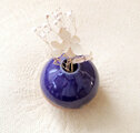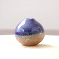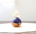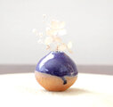 土物らしさを感じられる荒めの白陶土と、鮮やかな瑠璃色が魅力の瑠璃釉を使用して制作した、ちょこんと小さなフォルムが可愛らしい一輪挿しです。