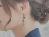 アクアマリンとグリーンがミックスされた爽やかで透明感のある色合いのしずくビーズが耳元で揺れるピアス/イヤリングです。