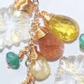#Ecru #天然石 #ピアス #イヤリング #ロゼンジ #ローゼンジ #クリスタル #金箔 #ダブレット #ジルコン #サンストーン #ヘリオドール #マンダリンガーンエット #ノウゼンカズラ #凌霄花 #Ecru_新作