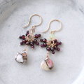 コッパーピンクオパールとガーネット&ルビーフリンジのピアス・ハーキマー&オパール付き・イヤリング変更可・14kgf