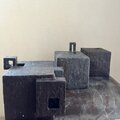 オブジェ (花器) 黒釉&焼締 幾何学紋 box on box No.3、4、5