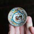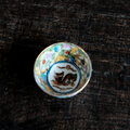 見込みに龍(辰)◆チャイナレトロで可愛い。中国製造 干支文色絵金彩小ぶり猪口 茶杯 花尽くし シノワズリ i1
