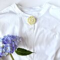 サイトの写真よりなお美しいブローチが届きました!白なのに光でさまざまな色が差し、季節を問わずどんな服にも映えそうです。 包装もとても丁寧で、作品への愛と購入者への心遣いが溢れており、とても幸せな気持ちになりました。 素敵な作品をありがとうございました!きっとまたご縁がつながる気がします。