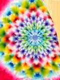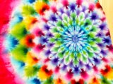 全て染色されるタイダイ染め、絞り染めの作品群。