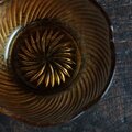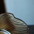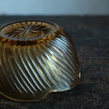 花形で可愛い◆琥珀色で素敵。昭和期 アンバー硝子深皿 曇りガラス 昭和レトロ 戦後 丁寧な暮らし。古道具 古民家【縁にアタリ】