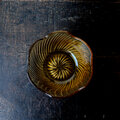 花形で可愛い◆琥珀色で素敵。アンバー硝子深皿 曇りガラス 昭和レトロ 丁寧な暮らし。古道具 古民家 昭和後期