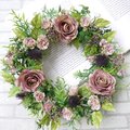 優しいモーヴピンクの大輪ローズを主役にしたアンティーク感漂うリースです。大輪ローズは幾重にも重なる花びらが見る角度によって表情を変え、優雅な気品を漂わせています。その周りには同系色の繊細な小花や個性的なエリンジウム、パープルの実ものがアクセントとなって甘すぎない大人の可愛らしさを添えています。アンティーク調のお花たちの美しいグラデーションと明るいグリーンのコントラストはナチュラルながらも洗練された印象で季節を問わず長く飾って頂けるデザインです。自身へのご褒美に、大切な方への贈り物にいかがでしょうか?上品で落ちついた雰囲気なので玄関ドアはもちろん、リビングや寝室などにも馴染みやすく、壁に飾るだけで空間が華やぎ、上品な彩りを添えてくれます。このリースで毎日の暮らしにぜひ癒しと彩りを添えて下さい。
