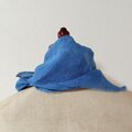 小さいけれど、首すじの日差し除けにピッタリです。藍の冴えたお色と麻の透明感が暑い夏に素敵です。素敵な作品をどうもありがとうございました。