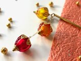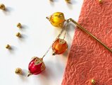 鬼灯の様な2トーンカラーのビーズを3連にしてかんざしを制作しました。