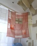 蘇芳染めシルクやコットン、リネンのはぎれを組み合わせています。