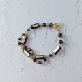 シャープな印象の四角いブラックシェルをブレスレットに。