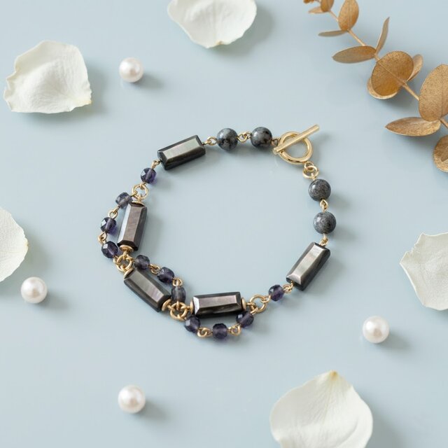 使用ビーズ ブラックシェル・アイオライト・ラルビカイト・チェコガラス