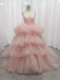 実例写真!カラードレス ピンク キャミソール リボン 柔らかく重ねたチュールスカート 抜群のおしゃれ見え