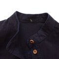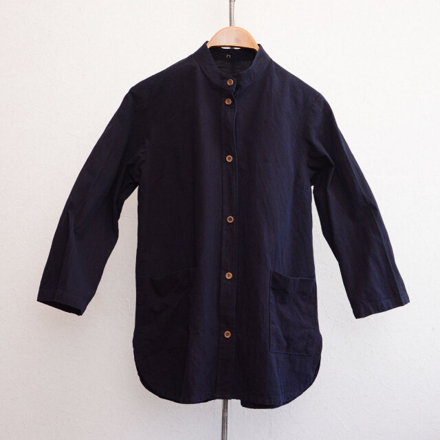 素朴な木綿の風合いと、深みのある藍の色合いが印象的な、バンドカラーのシャツジャケットです。