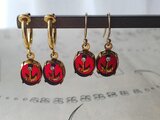 お耳元で揺れると、少し明るく赤が煌めいたり、深く濃い赤色の時もあり、めくるめくチラチラと赤色が変化して可愛らしいです。