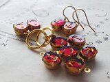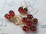 1960年代Germanヴィンテージ、約10×8㎜ほどの真っ赤なアンカーデザインGlassカボションを用いてお作りしましたピアスまたはイヤリングです。