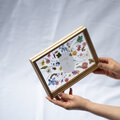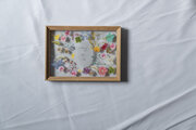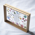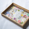 アクリルプレートで圧着し、一つ一つのお花の形を楽しんでいただけるデザインになります。(重ねるレイアウトが出来ないため、プレス出来るお花の種類は限られます。)