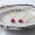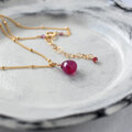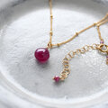 こちらAタイプはきらめきが美しいステーションタイプの14kgfネックレスに8.5mmサイズのルビーをあわせています。Bタイプよりもやや小ぶりですが厚みがあります。