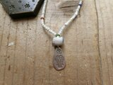 *古のネックレス。@アフリカの再生玉+カレンシルバーチャーム+ジャワのシードビーズ(艶消し)+ヴェネチアシードビーズなど