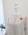 モノトーンやネイビー、アースカラーはもちろん、ブローチと同じオレンジのワンピースに合わせても馴染みます。