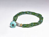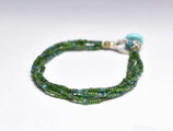 アンティークグリーンミックスシードビーズの4連ブレス(ターコイズ留め金)