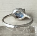 鮮やかなブルーのインクルージョンが指元で個性的なアートのように輝きます*水色のインクルージョンが点在する可愛いナミビア産シャッタカイトinクォーツ*まるで水中に可愛い何かを飼っているかのようなギラライトinクォーツとも良く似た雰囲気、あまり耳にしない石ですが他の青色インクルージョンのメジャーな石と同じようにとても希少な石です*背面にV字の溝があるためシルバーでカバー。ミニクラスターの原石フリーフォーム、唯一無二の極レアストーンをお楽しみ下さい*リングは古鉄錆のようなマット仕上げ、12~20号(推奨サイズ)の範囲を目安に調整可能、サイズ確定後に石留め致します*通常、黒化遅延処理を施しますが銀そのものの変化をお好みの場合は処理不要とお申し付け下さい*黒化防止ロジウム(最終画像下段色味参照)など各種コーティングご希望の場合は承ります(オプション1000円)