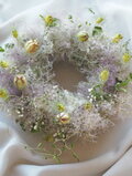 ドライフラワーというよりも、生花を妖精にしたような軽やかなリース。 ありがとうございました。 暑い夏に、萎れる心配をせずに一緒に過ごせる優しい花々と共に、この夏を乗り切ろうと思います。
