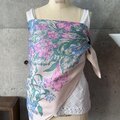 淡く柔らかなピンクをベースに、大胆に描かれたフローラルの大判スカーフ。