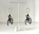 ピアス 切り絵風金魚と水の波紋リング 黒 ブラック シルバー イヤリング交換可能 夏 和風 涼しげ フィッシュフック