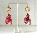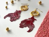 切り絵風金魚と水の波紋リングでピアスを製作しました。