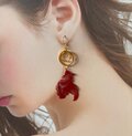 ピアス 切り絵風金魚と水の波紋リング 赤 レッド ゴールド イヤリング交換可能 夏 和風 涼しげ フィッシュフック