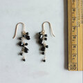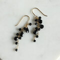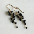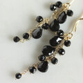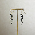 ペアシェイプとラウンドカットのブラックスピネルをチェーンに留めつけたピアスです。ピアスフック、ワイヤーは14KGFを使用しました。